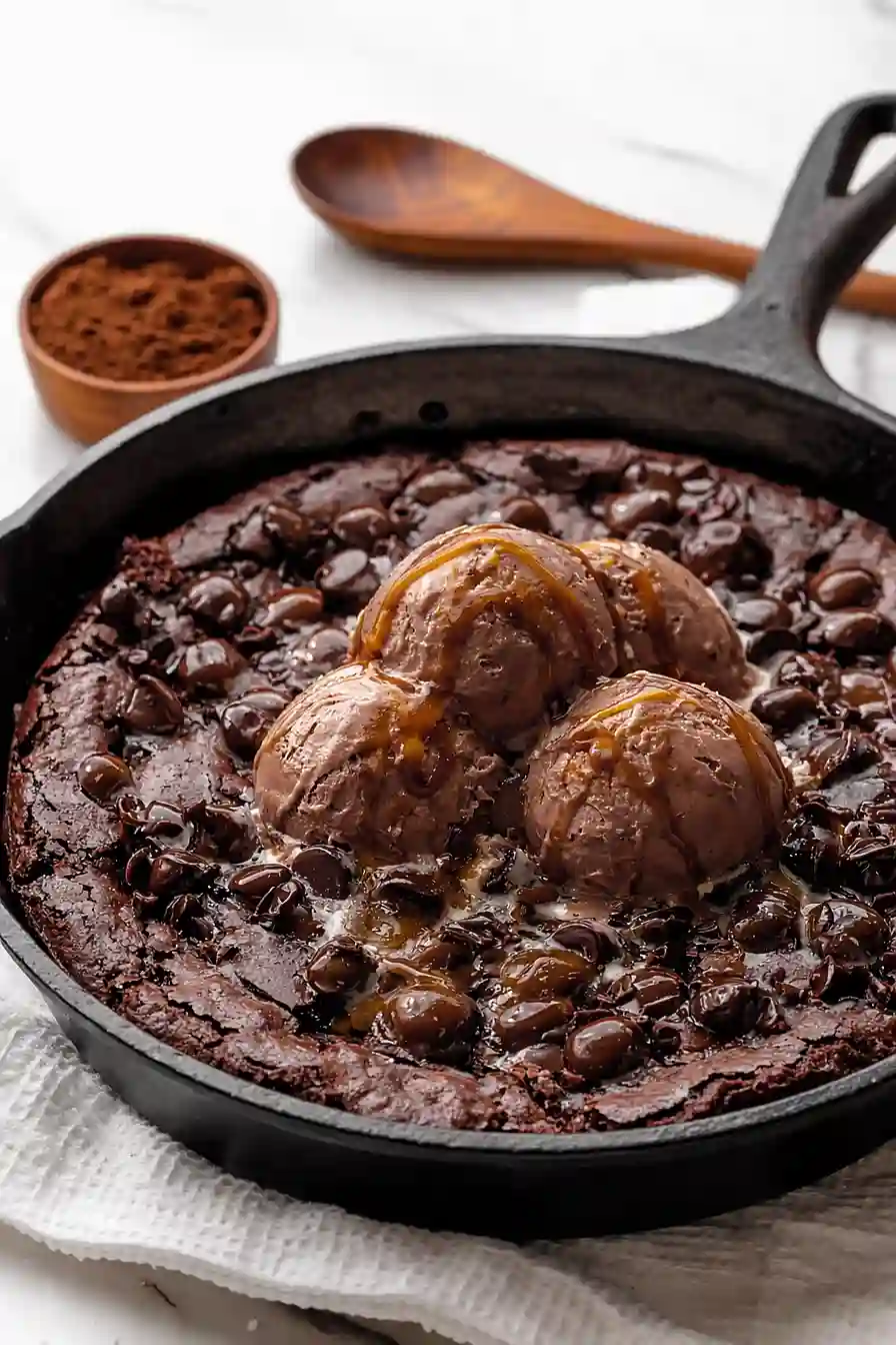 The best way to serve skillet brownies is straight from the cast iron with a big scoop of vanilla ice cream on top – the warm brownies and cold ice cream combo is absolutely perfect. You can also drizzle some caramel or hot fudge sauce over the whole thing if you’re feeling extra indulgent. For a fun party dessert, set out the warm skillet with bowls of different toppings like whipped cream, fresh berries, chopped nuts, or even a sprinkle of sea salt so everyone can customize their own serving. A cold glass of milk on the side is always a good call too, especially if you’re going for that nostalgic dessert vibe.