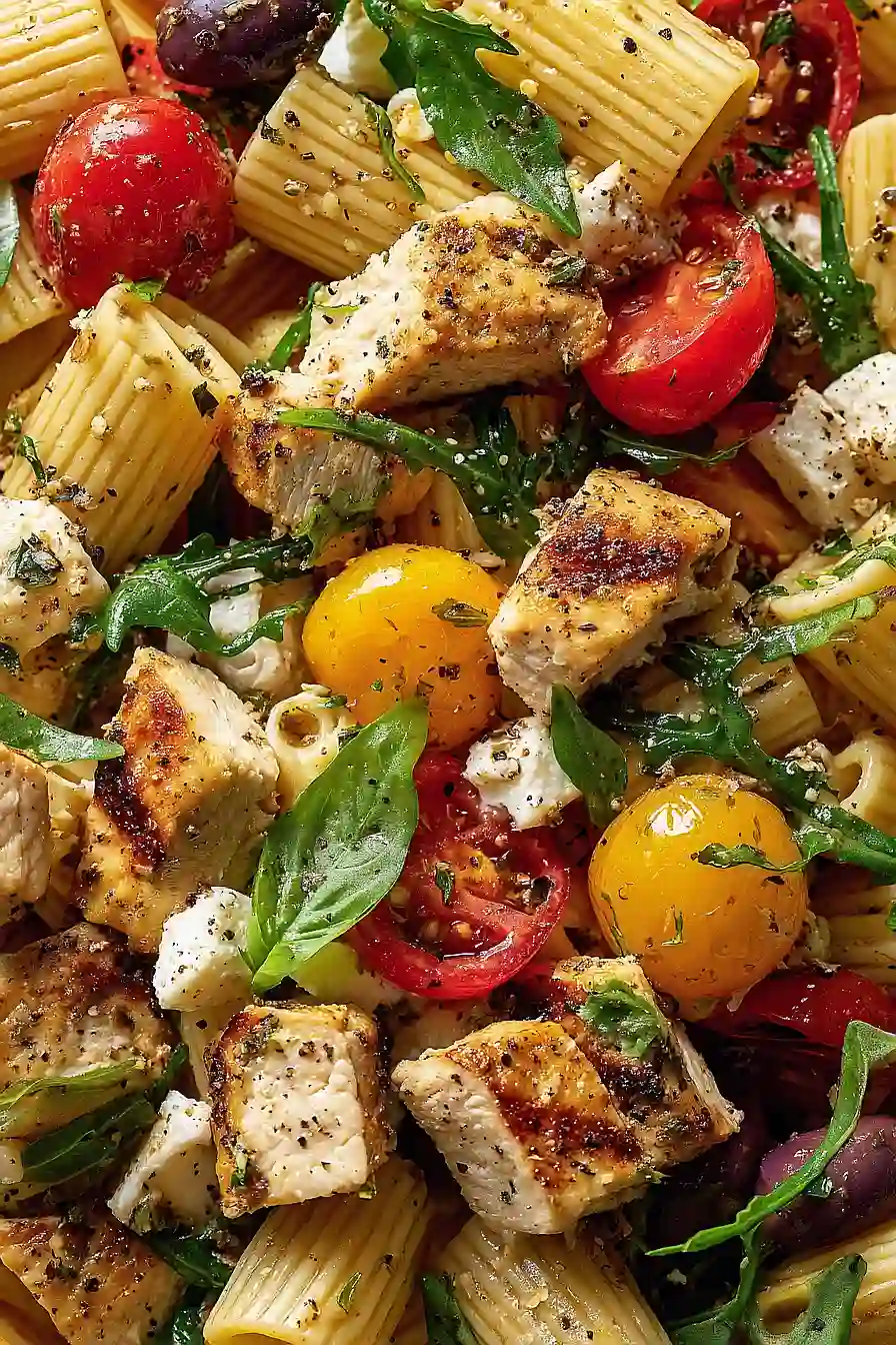 - High-protein and satisfying – With a full pound of seasoned chicken breast, this isn’t your typical side dish pasta salad—it’s a complete meal that will keep you full.